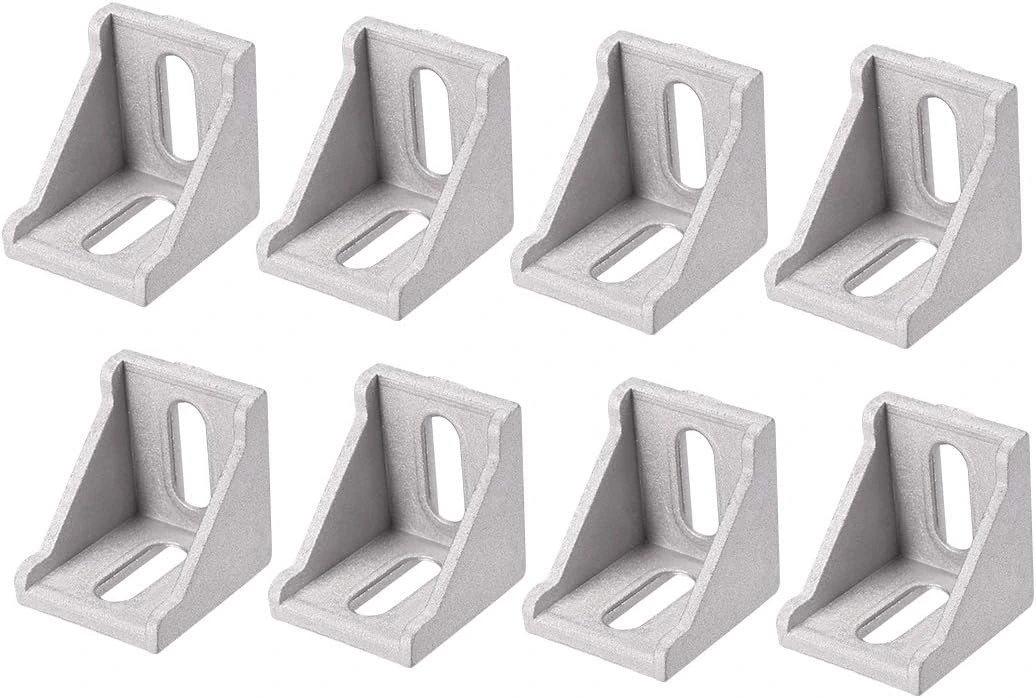 Cast Corner Bracket for 40mm Aluminum Extrusion 27x27x40mm these cast aluminum brackets are used to connect pieces of 20mm aluminum extrusion at a 90-degree angle. The gussets guarantee a solid, rigid