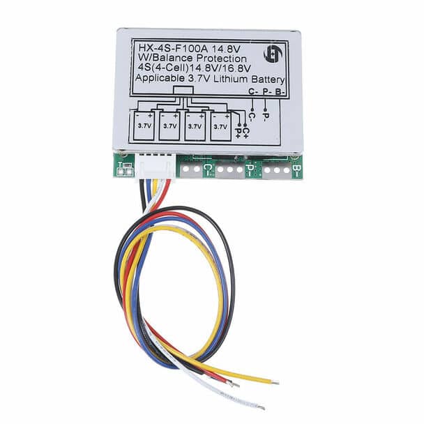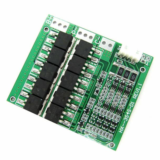 This battery management system (BMS) is a four-string 14.4V Li-ion battery protection board with a balance charging capability. Overcharge protection, over-discharge protection, over-current protection, short circuit protection, and temperature protection are all included in this BMS.